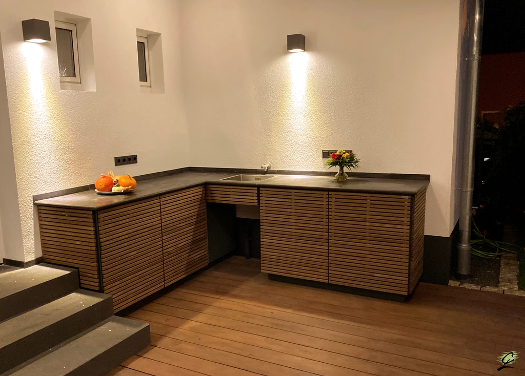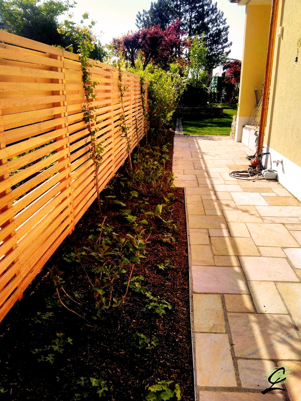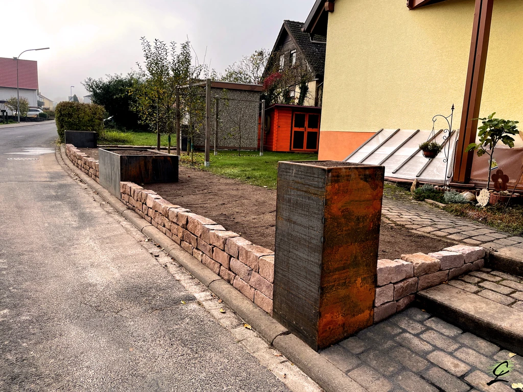 Ausstattungselemente, wie z.B. Pergolen, Feuerstellen und Sichtschutzelemente benötigt. Wir