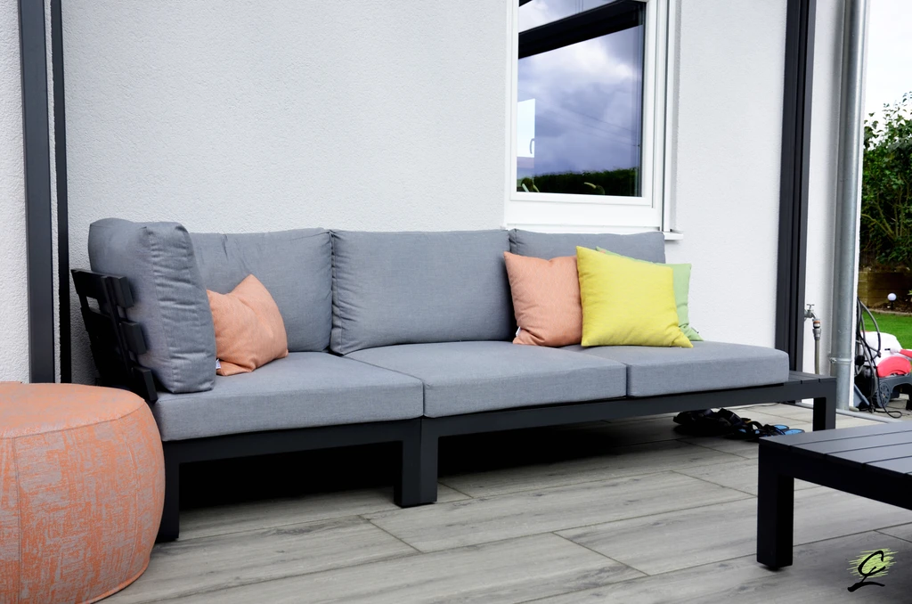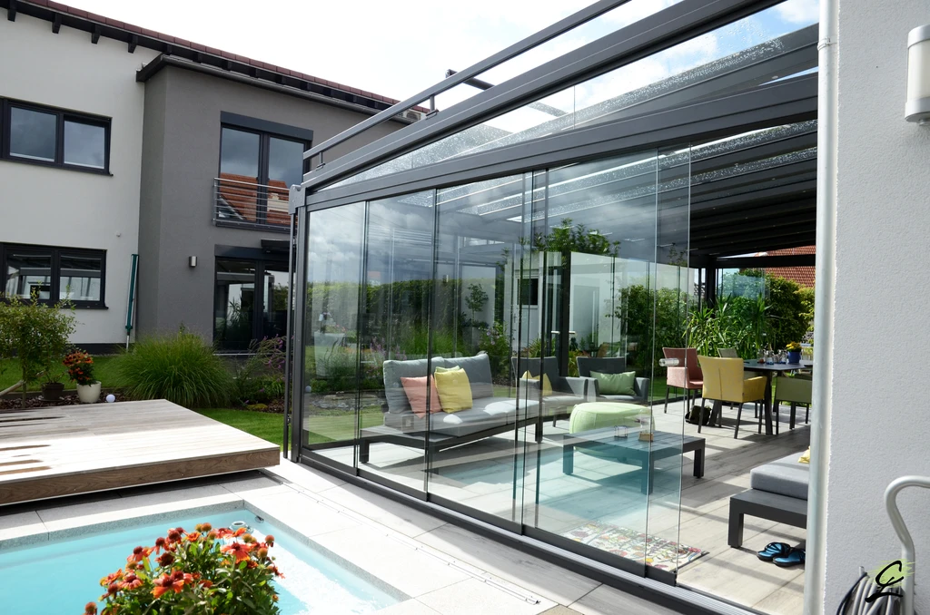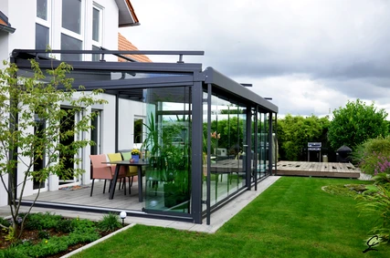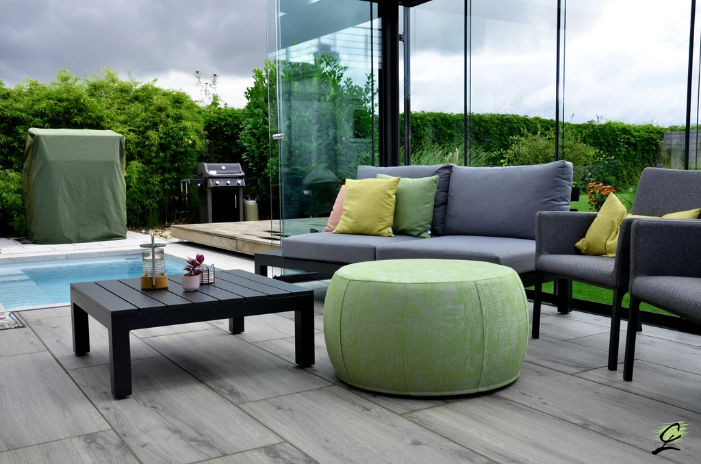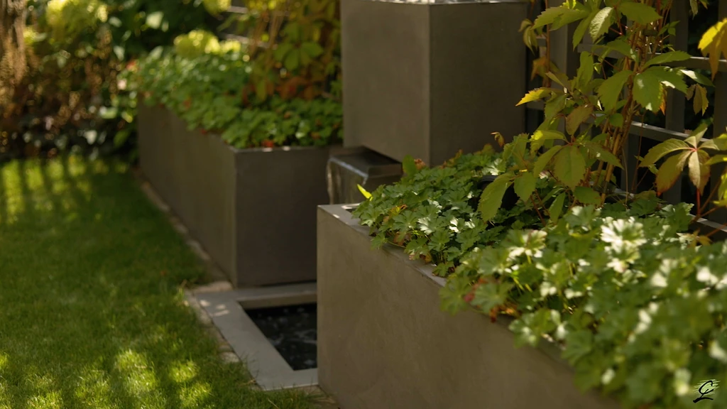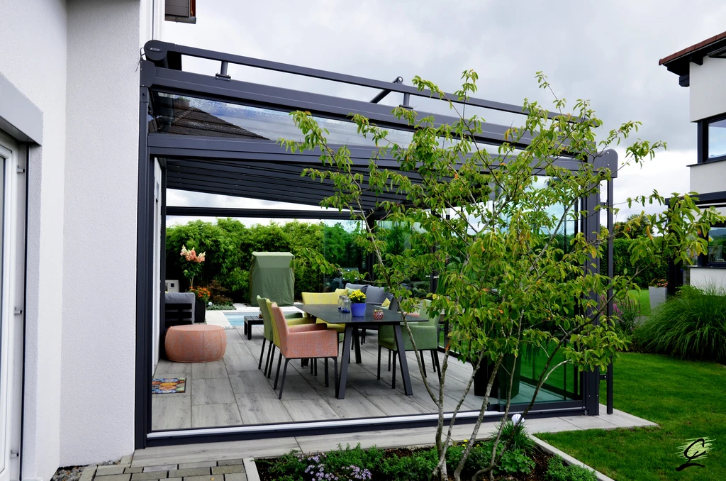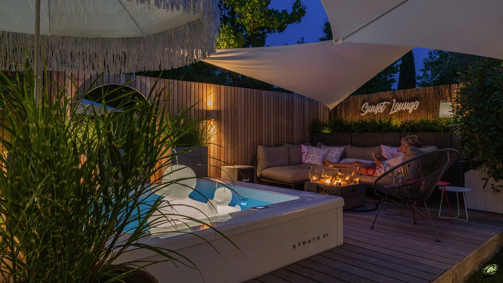 In diesem modernen Hausgarten wurde mit dem großzügigen Sommergarten ein „grünes Arbeitszimmer“ und zweites Wohnzimmer erschaffen. Er lädt schon bei den ersten warmen Sonnenstrahlen im Frühling ein, in der Lounge-Ecke zu entspannen. Angrenzend an den Sommergarten verspricht ein C-Side-Pool eine willkommene Abkühlung an heißen Tagen. Der Standkorb bietet eine schöne Möglichkeit zum Verweilen nach einem ausgiebigen Bad. Wird der Pool nicht genutzt, kann das Holzdeck kurzerhand darüber geschoben werden und fungiert sowohl als erweiterte Terrasse als auch als Abdeckung.
