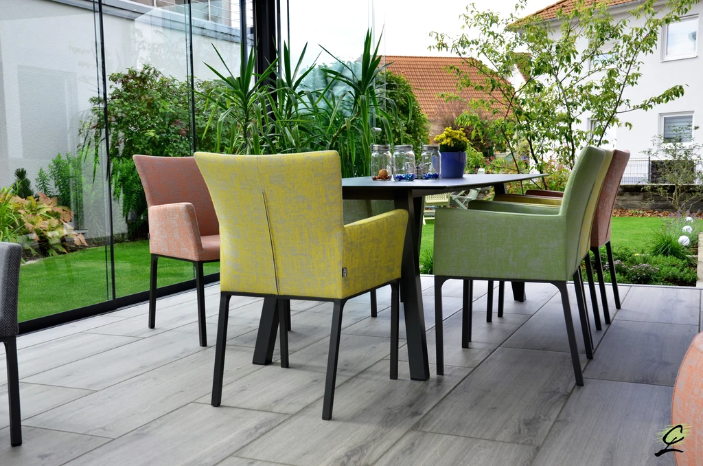 Terrasse einem Wohnzimmer im Garten. Damit Ihre Außenveranda den vielfältigen Anforderungen