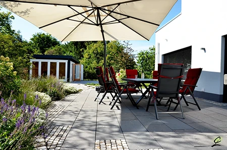 Sie sehnen sich nach einer langlebigen Terrasse, die sich harmonisch in die Wohnraumgestaltung einbindet? Unsere erfahrenen Terrassenbauer stehen Ihnen mit Rat und Tat zur Seite. Egal ob Hangsicherung, Materialauswahl oder Nutzungskonzepte: Wir verstehen unser Handwerk und bringen neue Anregungen, an die Sie vielleicht noch nicht gedacht haben, sei es der Einsatz von raumteilenden Elementen oder gezielten Licht- und Wasserelementen. Bei Bedarf planen und gestalten wir Ihre Terrasse barrierefrei, damit sie auch noch in Jahrzehnten genutzt werden kann.
